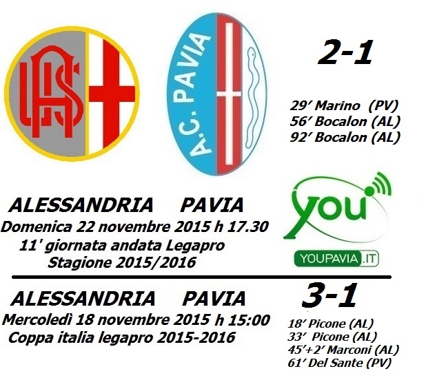 ALESSANDRIA PAVIA 3-1 Coppa italia legapro – mercoledì 18 novembre alle 15.00